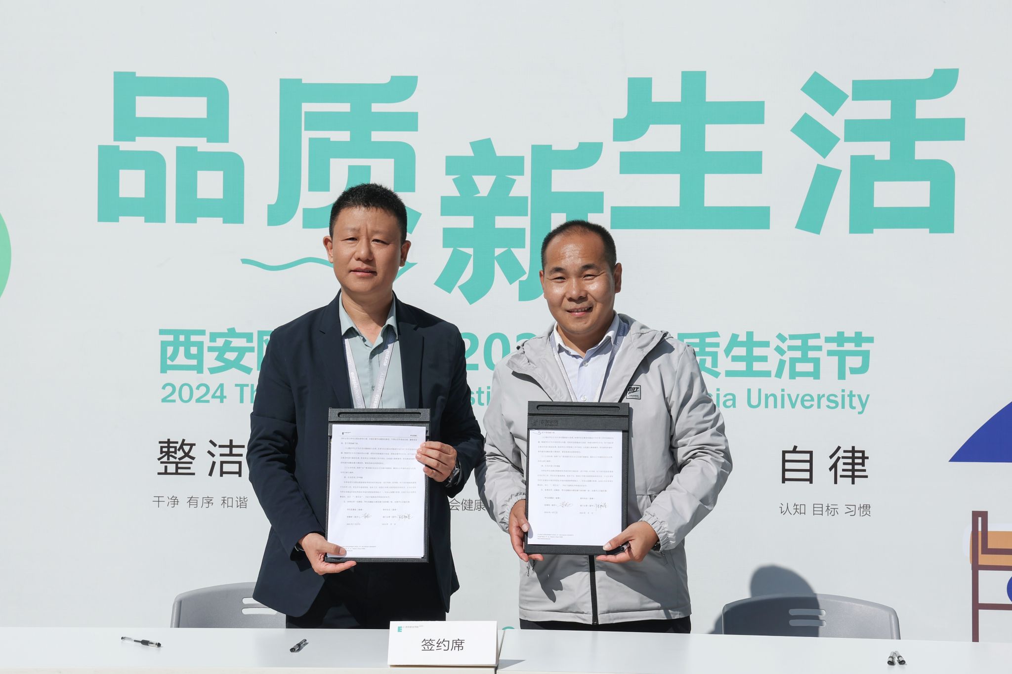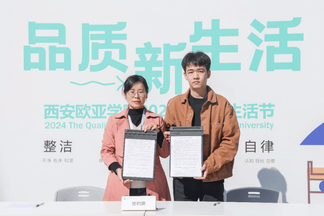 10月23日下午,全校330余名师生齐聚虹桥碎石广场共同见证了品质生活节开幕。各青年社区主管与学生代表带着对价值观的认同和对同学的期许分别签订了《2024年行为引导目标责任书》与《学生行为承诺书》,以“轻约束”的管理模式,注重学生契约精神的培养,从而实现自我约束。