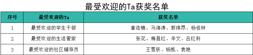 在公园般的欧亚校园里,有着这样一群人,他们有着多种角色,或是朋友知己,或是长辈,他们用真心呵护每一位学生的成长,用行动践行着“以学生为中心”的教学理念,让每一段青春都不曾被辜负。11月7日至11月10日,行为引导项目面向全体学生,组组织开展了最受学生欢迎的学生干部、生活管家、社区辅导员评选活动,全校3500多名学生参与其中,为自己心中的Ta投了自己的一票。最终4名学生干部、4名生活管家和3名辅导员脱颖而出,成为学生心中的最爱。