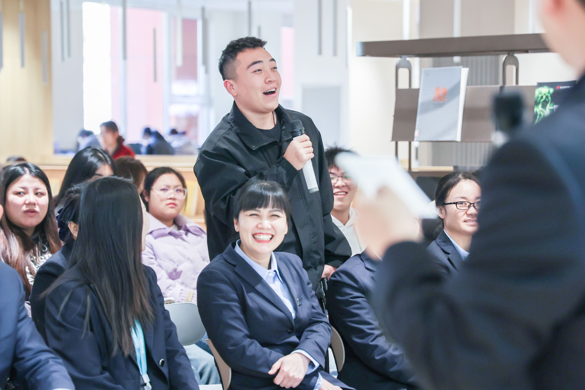 活动现场,同学们积极参与到现场的互动环节,他们从自身出发,说出了本次文化节对自己的影响、对宿舍人际关系的影响以及环境改善的影响,他们的分享加深了大家对社区文化、社区品质生活的认知和了解,希望能借本次生活节,打造更好的社区生活环境,让自己始终保持一个好的心态,积极投入到学习和生活中去,获得更好的成长。