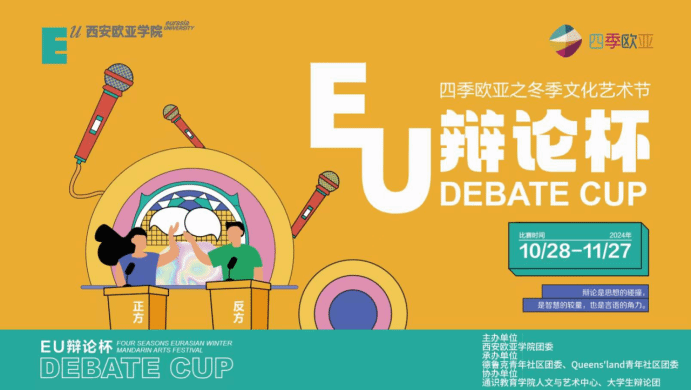 为提高学生的思辨能力和写作能力、语言表达能力和团队协作能力,营造校园文化氛围,由beat365手机版官网团委主办,德鲁克青年社区和Queens'land 青年社区承办,通识教育学院人文与艺术中心与大学生辩论团协办2024年四季欧亚之冬季文化艺术节——EU辩论杯;历时一个月,经过初赛、半决赛和决赛,最终,EU辩论杯在北A-222全景教室圆满落幕。