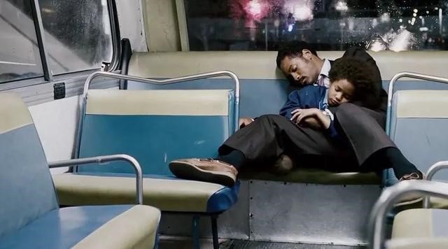 第一部分:坐公车(穷人必选)。Chris在生活中无疑是个失败者,他的妻子最终也选择离开他,他的家庭生活毫无保障,当他抱着儿子,躲在厕所中过夜时,留下的是挫败与愧疚的泪水。