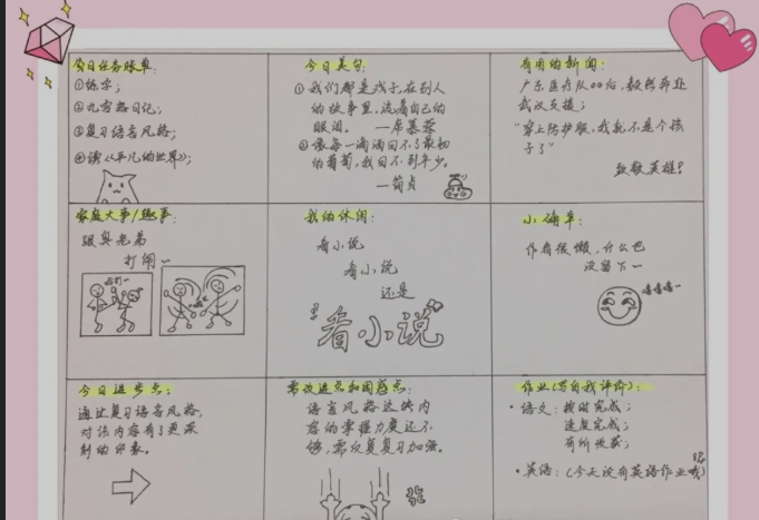 (1) 制作出九个格子,然后在中间写上科目、标题