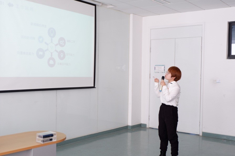 接下来,分别由贺子涵、陈璟蕾、孟天奇同学代表组织部、宣传部、实践部上台进行述职,针对其中存在的问题,老师们进行了现场提问和指出,同时也对各部门今后的工作进行了指导和建议。
