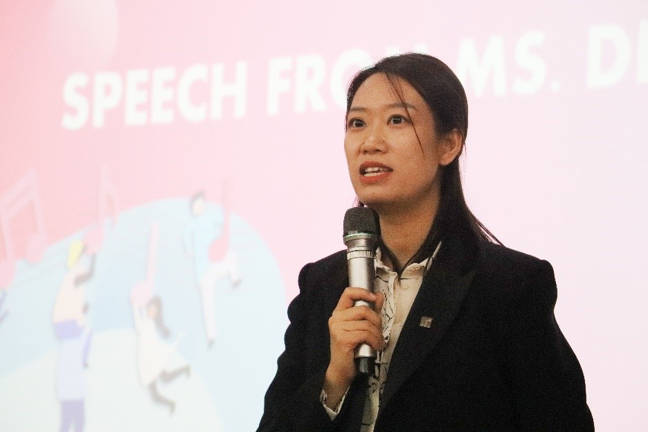 随后beat365国际合作与交流中心副主任丁洁老师在同学们的热烈掌声中上台为本次表彰致辞。她首先对国际青年社区一年来的各项工作给予肯定。同时丁洁老师以剑桥大学学生的生活作息及行为思想为例,激励我们要有求知若饥,虚心若愚的生活学习态度。