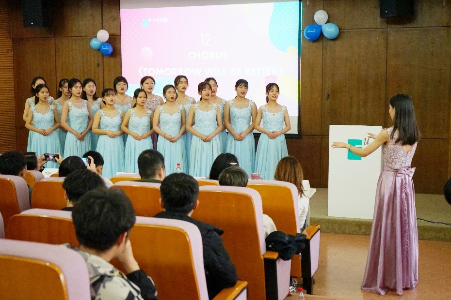 本次表彰典礼同学们首次尝试了全程中英文主持。在典礼进行期间,还进行了英文歌曲才艺表演环节和趣味抽奖环节。