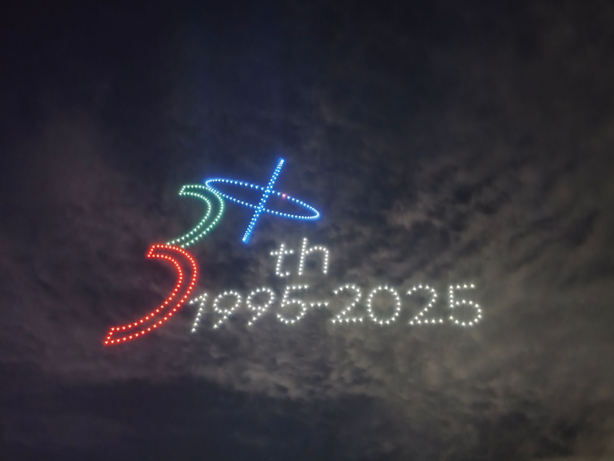 无人机呼啸升空,“欧亚30岁生日快乐”“做平凡世界的一束光”在夜幕里次第点燃——掌声如潮,灯海如昼。无人看见,人群里那抹悄悄扬起的嘴角:他们和光同尘,却把自己留在暗处。几分钟的绚烂,是Xdea青年社区把青春摁进每一帧像素,替母校守岁,也替所有人守住仰望的亮度。