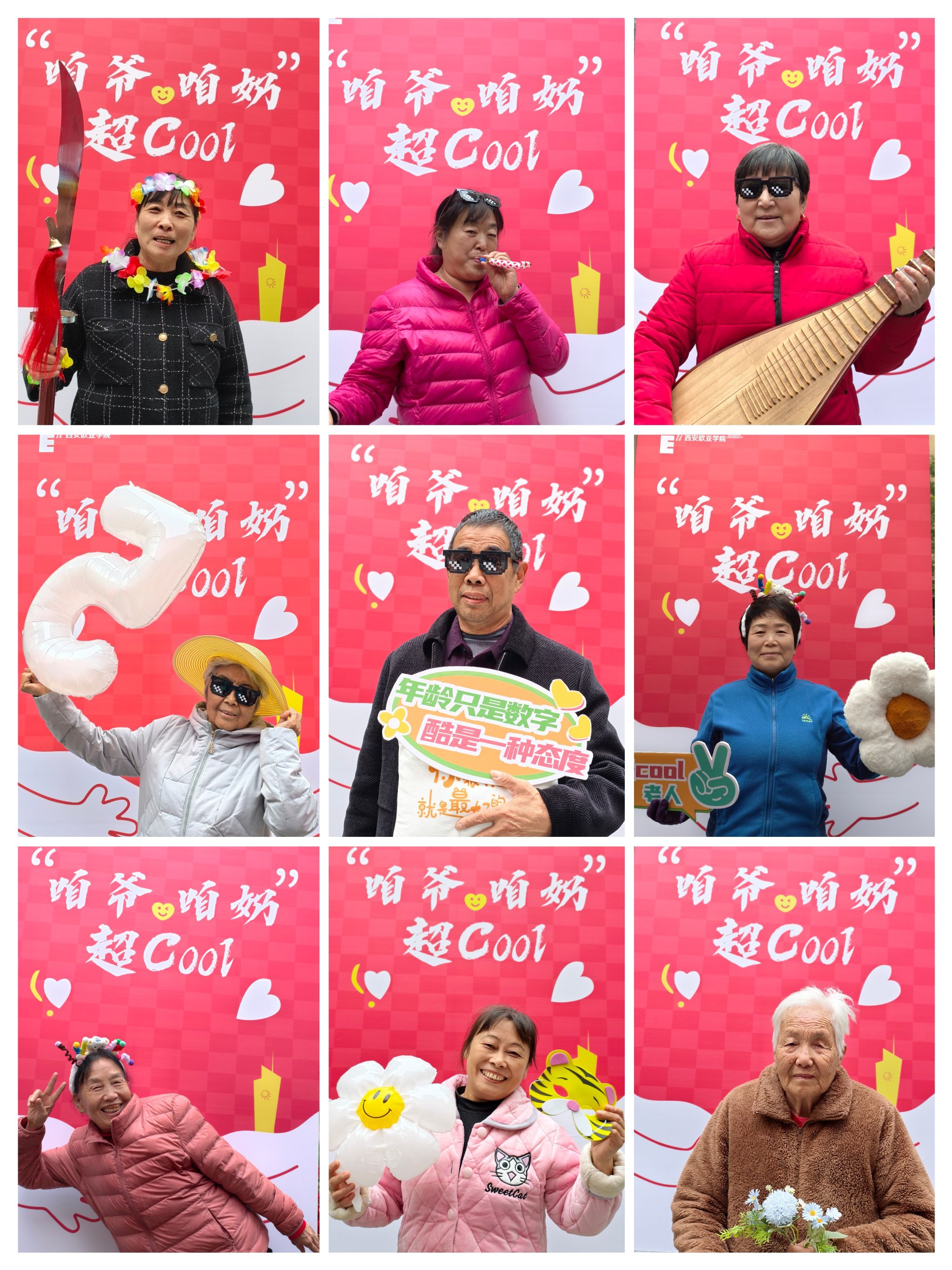 民乐合奏《彩云追月》的温柔旋律刚落下,潮拍环节直接炸场!志愿者们扛着相机就位,爷爷奶奶们瞬间开启 “抢镜模式”:扯扯衣角、理理发型,还主动拉着志愿者解锁潮流装扮,墨镜一戴、pose 一摆,每一张都是 “老年时尚大片” 既视感!