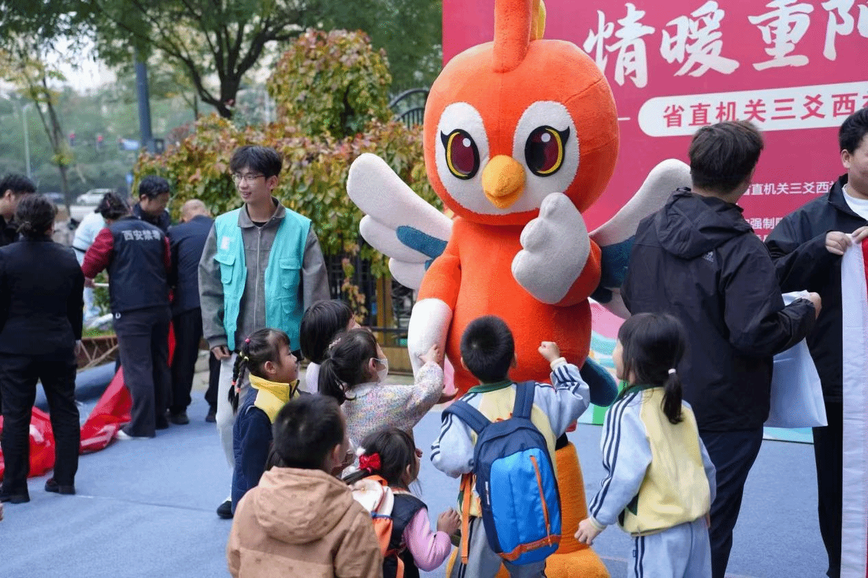 欧亚三十周年形象IP朱雀雀化身“重阳小使者”,现场和小朋友们欢乐互动用孩子们喜欢的方式传递温情,守护每一颗童心健康成长。