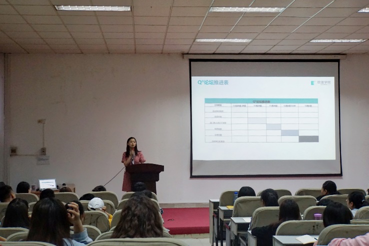 大会第一项,由学生会主席闫雪芮上台讲话,
