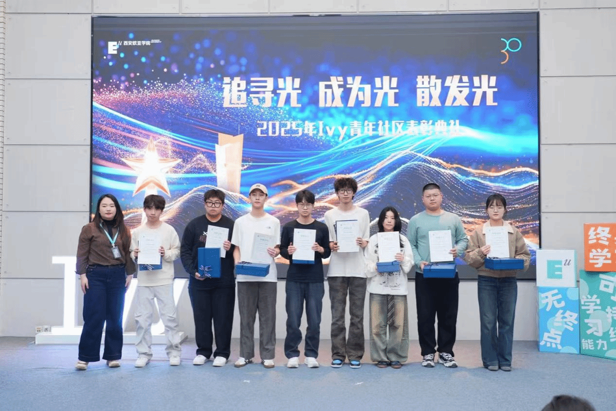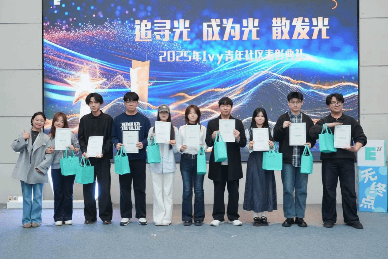 当青春与榜样相逢,当追光与发光交织,便谱写出校园里最璀璨的成长乐章。2025年12月10日,Ivy青年社区2025年度表彰典礼于大学生活动中心16号房圆满结束,以“追寻光,成为光,散发光”为主题,见证了一批优秀学子与集体的闪耀时刻。全体师生齐聚一堂,回溯奋斗征程,见证榜样力量。