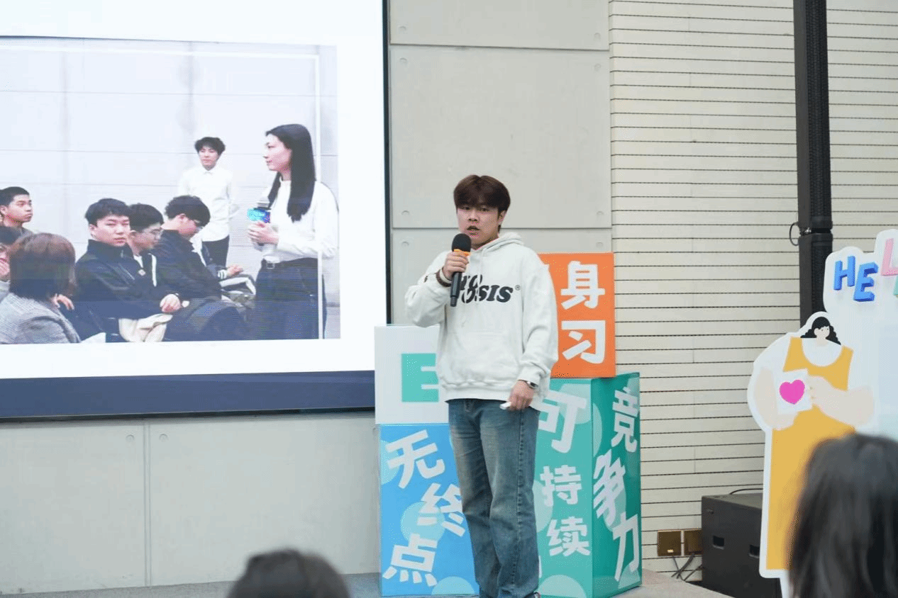在表彰典礼上,主持人通过表彰前预热活动的照片选出年度最受欢迎的老师-徐源迎老师。这份荣誉是同学们对她真心付出的肯定。徐老师分享了自己从欧亚学生到辅导员的十年历程,身份虽变,但育人初心未改,她始终愿做学生成长路上的那束光。
