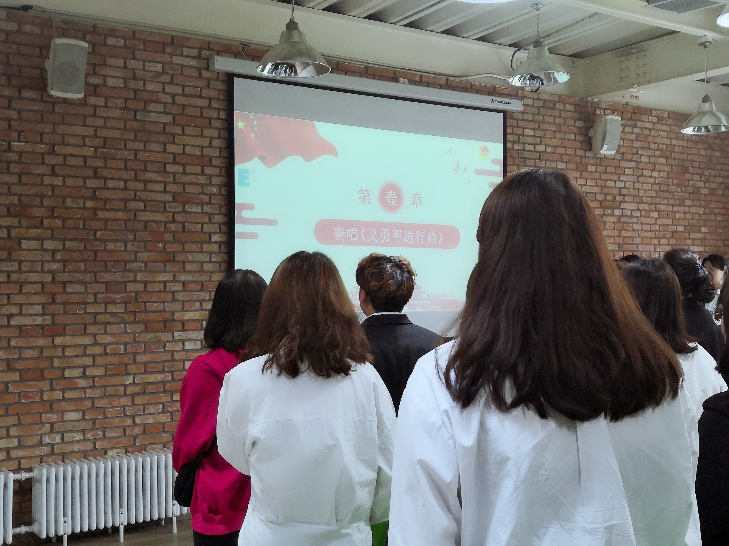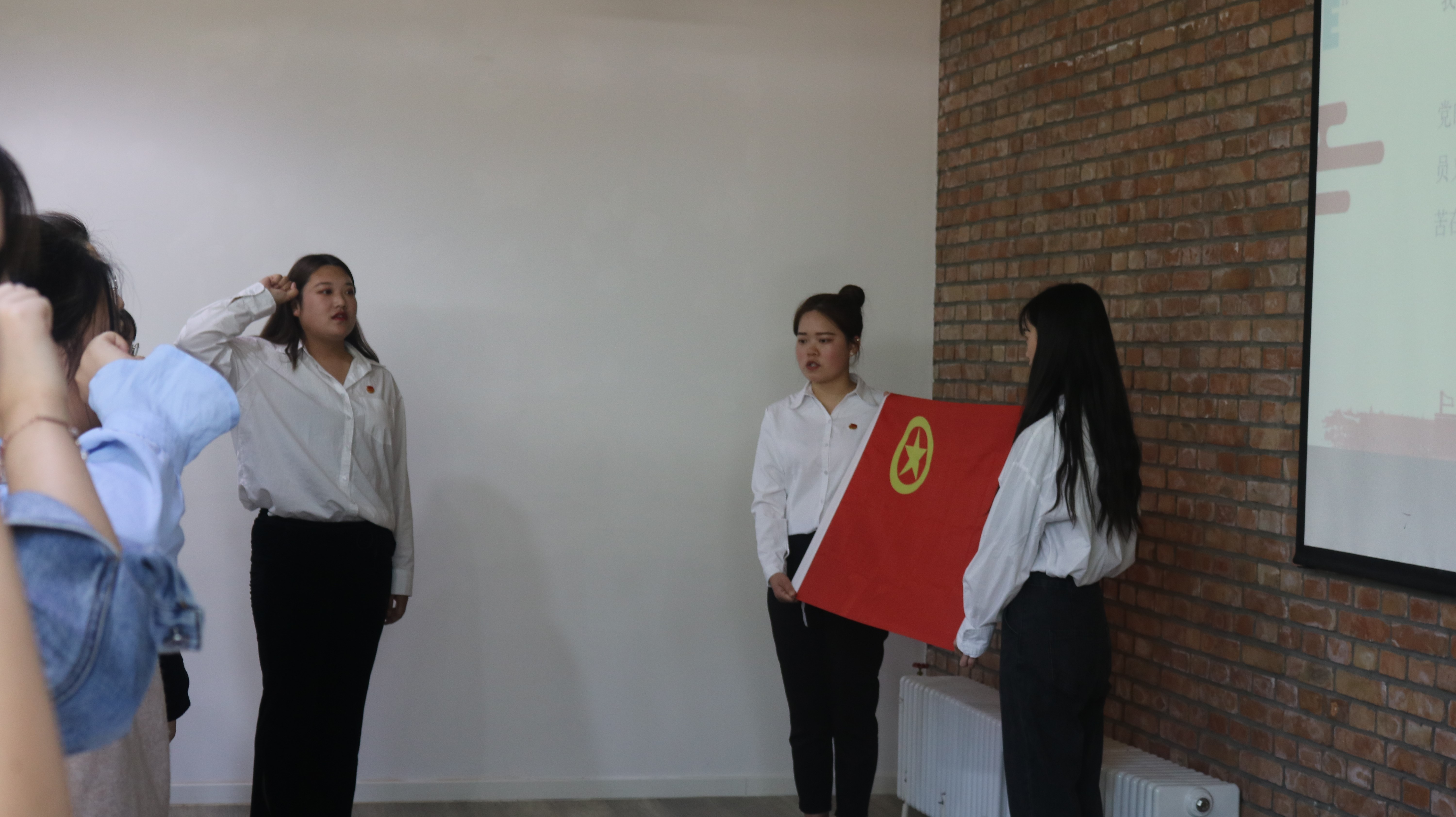 新团员代表——同学在团旗下带领老团员们重温宣誓仪式