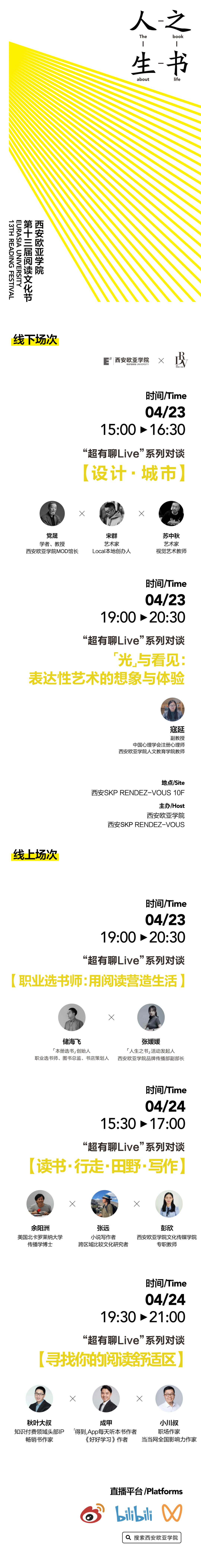 对此,beat365手机版官网邀请了党晟、宋群、苏中秋、储海飞、秋叶、小川叔、成甲、余阳洲、张远、寇延、张媛媛、彭欣12位嘉宾与教师,从城市与设计、“神仙工作”选书师到童话里的人生哲学,读书这件事,真的超有聊!