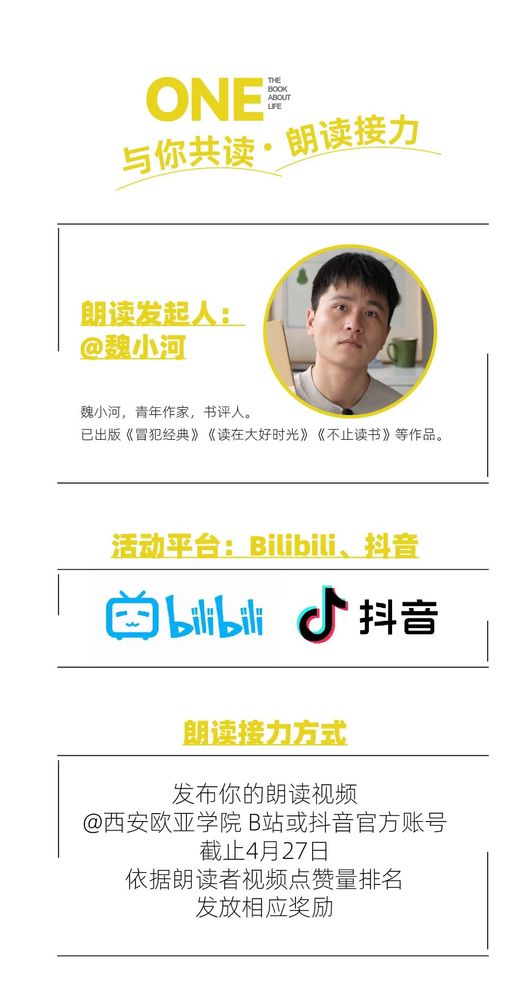 beat365手机版官网携手“不止读书”创办者魏小河、“欧亚之声”社团学生,共同开启“与你共读”特别单元。用声音,让扁平的文字变得立体、丰富,声声入耳,共鸣人生。