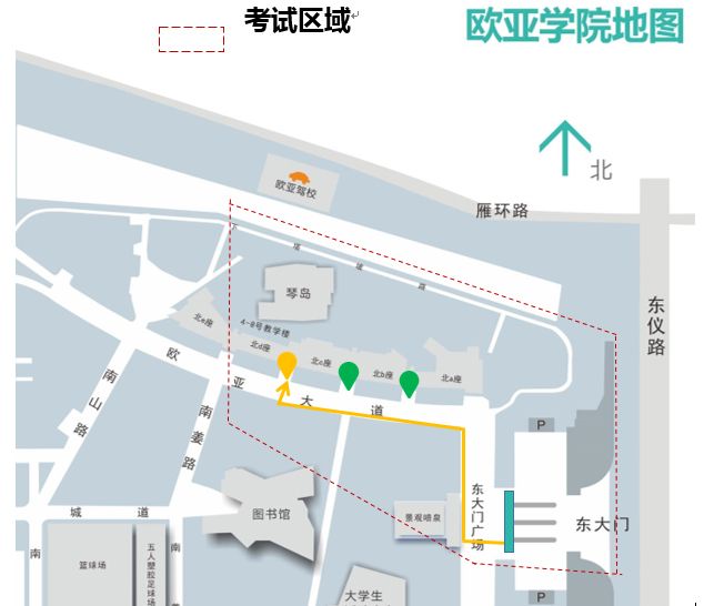 (一)考生进入考点:考生凭准考证、有效身份证件从学校东大门(东仪南路)进入校园。