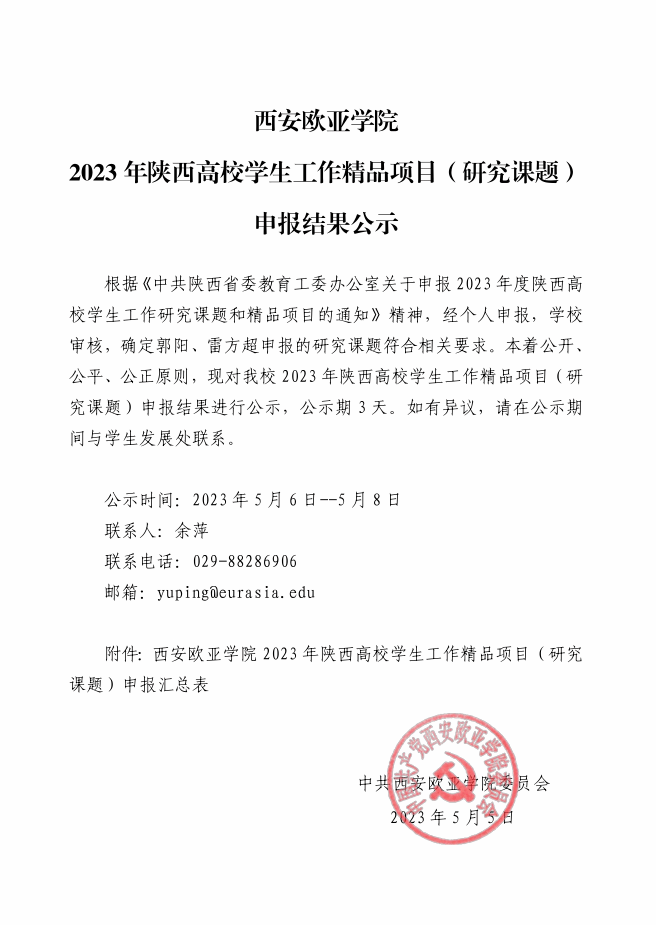 beat365手机版官网2023年度陕西高校学生工作精品项目(研究课题)申报汇总表