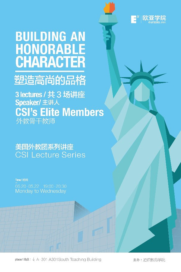 CSI 的全称是Chinese Students Impact, 他们是一个来自美国的教学团队,一个由专业教师组成的志愿组织,每年受到欧亚学院的邀请来到校园进行为期一周的交流和教学。今年,他们集结了一支由美国教师和在读大学生组成的18人团队,又将带来最地道的美式课堂体验和最直接的中美文化碰撞。希望我们大欧亚的同学们能够抓住这样与海外名师和优秀学生面对面的口语交流机会,在真实语境中练习口语,提高交际能力。