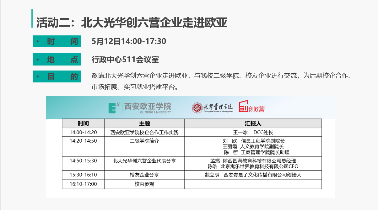 活动二:北大光华创六营企业走进欧亚