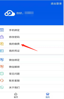 在首页选择“我要缴费”,或者进入“我的”界面,查看具体缴费信息。点击“支付”进入缴费流程。