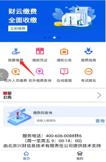 支付成功 登录成功后,点击“我要缴费”或点击“我的”—“我的缴费”。 |