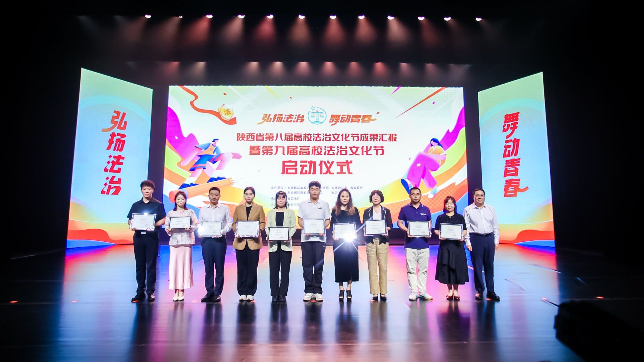 2024年9月29日,陕西省第八届高校法治文化节成果汇报暨第九届高校法治文化节启动仪式在西安外事学院鼓乐大剧院开展,beat365第三届模拟法庭活动荣获第八届陕西省高校法治文化节“十佳创新普法活动”奖项。 (图一)模拟法庭指导老师王珂(左四)上台领奖 本次活动以“弘扬法治,舞动青春”为主题,由省委依法治省办、省委宣传部、省委政法委、省教育厅、共青团陕西省委、省妇联、省关工委主办、省司法厅承办、西安市司法局、西安外事学院协办。...