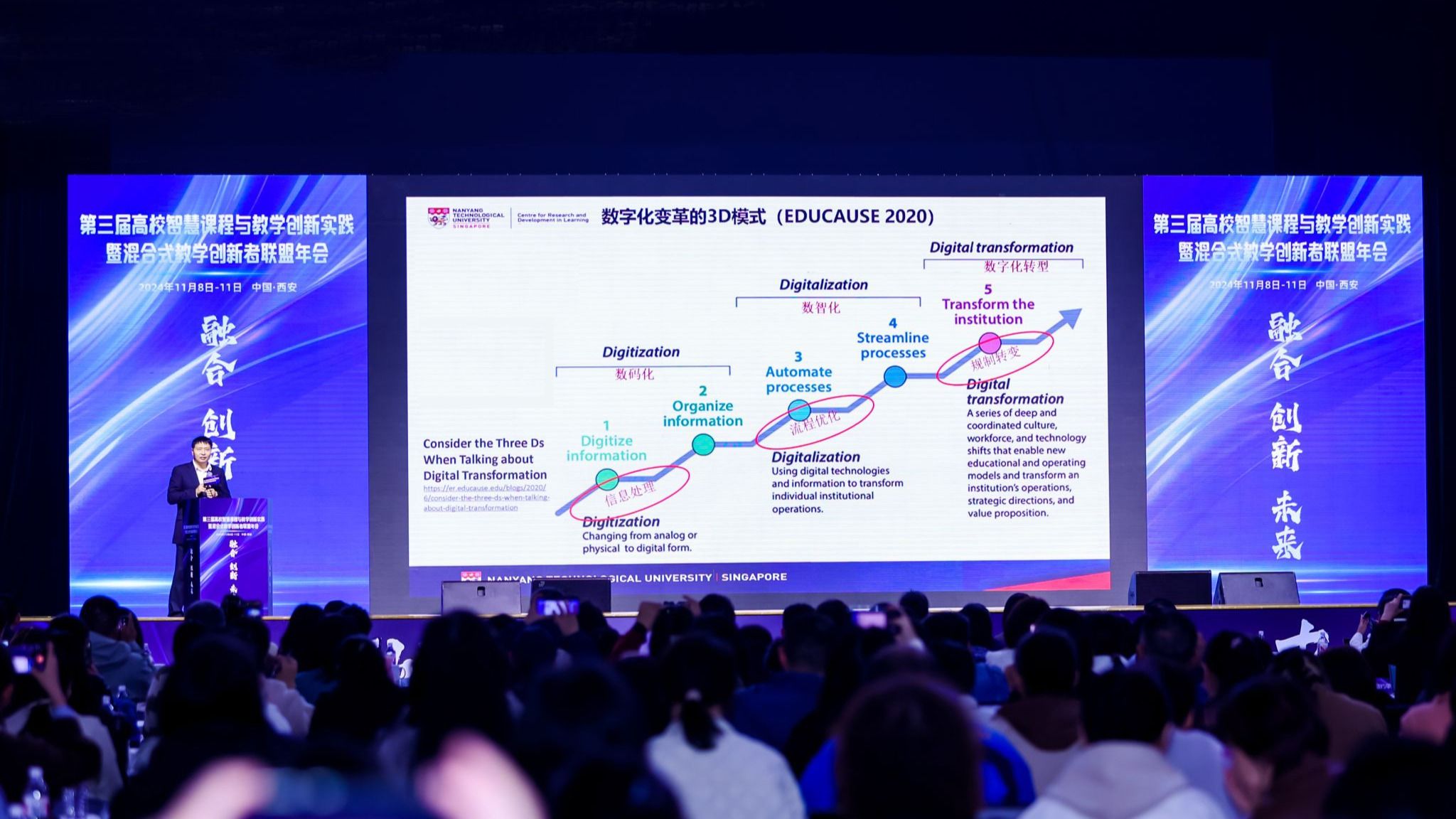 (图一)年会主论坛现场在数智化浪潮席卷全球的今天,教育领域的智能化转型正以前所未有的速度推进,人工智能深度赋能教育教学、塑造“智能+”高等教育成为混合式教学新生态。11月8日至11日,一场聚焦智慧课程与混合式教学创新实践的盛会——第三届高校智慧课程与教学创新实践暨混合式教学创新者联盟年会在beat365举办。本次活动由混合式教学创新者联盟、笃行新起点(北京)教育科技研究院主办,beat365手机版官网承办。超过30位国内外顶尖专家、...