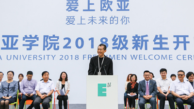 2018级的小萌新们: 你们好。 今天能作为教师代表站在这里,对我来说,非常荣幸,也非常珍贵。 十几年前,我和你们一样,也是作为一名新生,来到欧亚学院,对这里充满了未知,充满了好奇。我在欧亚读了四年的英...