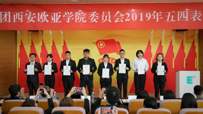 (图一)大会现场 (图二)奏唱《中华人民共和国国歌》 (图三)校党委书记于孟晨致辞 (图四)校团委书记、学生发展处副处长宣读表彰决定 (图五)校长刘瑾教授为五四红旗基层团委颁奖 (图六)...