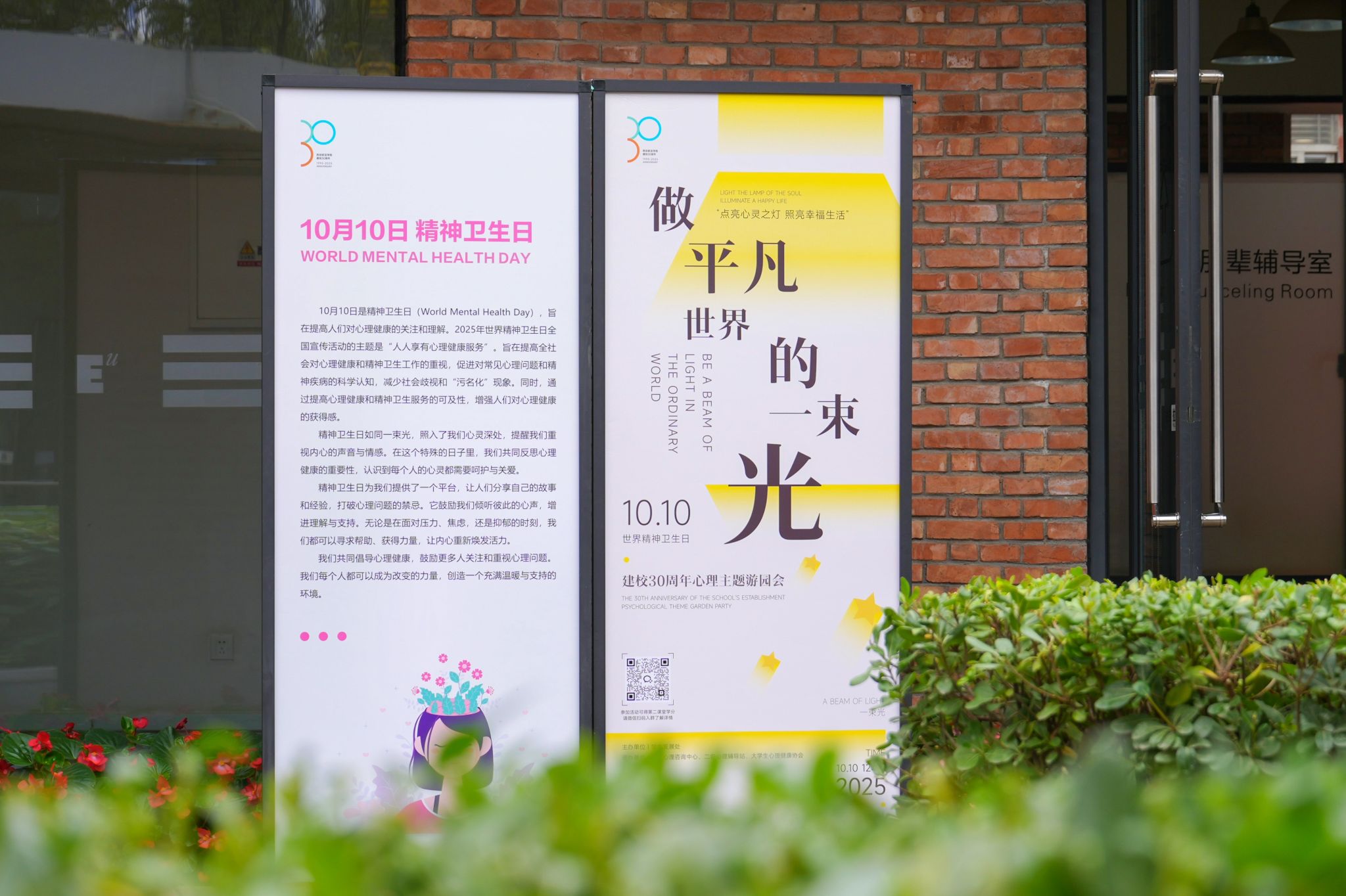 2025年10月10日是第34个“世界精神卫生日”,恰逢beat365手机版官网建校30周年。在这个富有意义的日子里,由学生发展处主办,学生心理咨询中心、各二级心理辅导站及大学生心理健康协会联合承办的“做平凡世界的一束光”心理主题游园会温暖启幕。