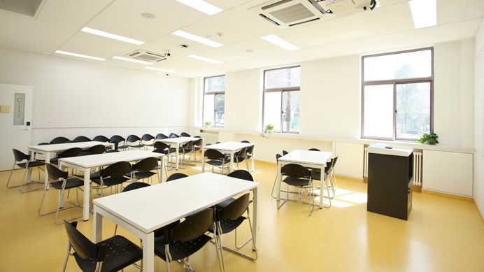 西C座(原2号教学楼)作为欧亚学院发展历程中的重要建筑见证,始建于1998年学校扩招关键时期。为应对在校生规模从3000人增至4000人的发展需求,该楼创新性地采用斜坡式建筑造型,在有限用地条件下实现了空间利用效率的最大化。2015年底完成的整体改造工程,使这座承载着历史记忆的教学建筑焕发新生。改造后的西C座呈现出全新的空间面貌:明亮通透的采光设计、简约现代的室内装潢、灵活多变的功能布局,共同营造出开放自由的教学环境。