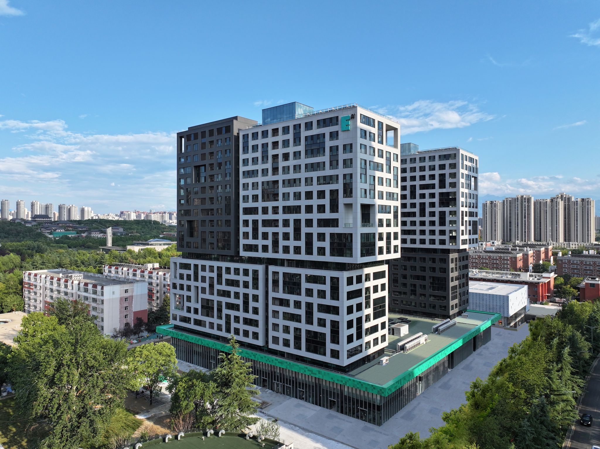 以砖红为主体色,搭配灰、白、蓝的外立面体现着新工业时代的艺术审美,自然而朴素。位于大厅入口东侧的垂直绿化墙,借鉴世园会立体绿化概念,既丰富了空间结构层次和景观艺术效果,又为建筑本身带来一股生命力。细节处的小心思,比如对色温的控制、家具地毯的选择,都让身处其中的人仿若置身于一个艺术的空间,处处感受到“将人的感受放置在第一位”的设计理念。