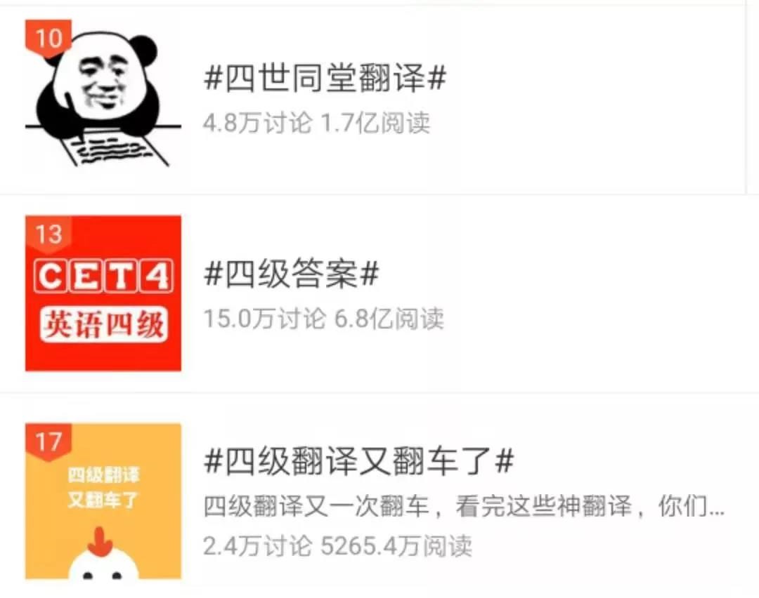 又到了每年围观四六级大型翻车时刻…… 下半年全国大学英语四六级考试刚结束 “四级答案”和四六级有关的话题就冲上热搜 还记得“四世同堂”和“出淤泥而不染”吗 今天 让我们重温一下四六级噩梦 ...